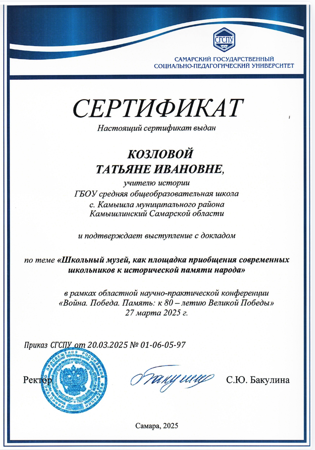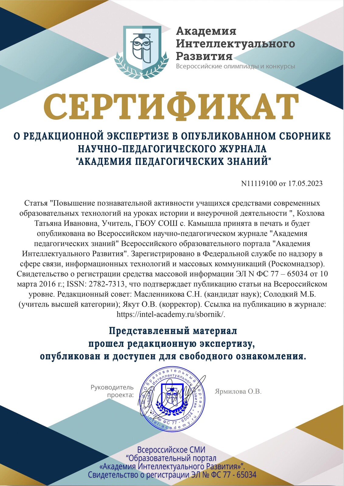 Сайт Козловой Татьяны Ивановны учителя истории ГБОУ СОШ с. Камышла